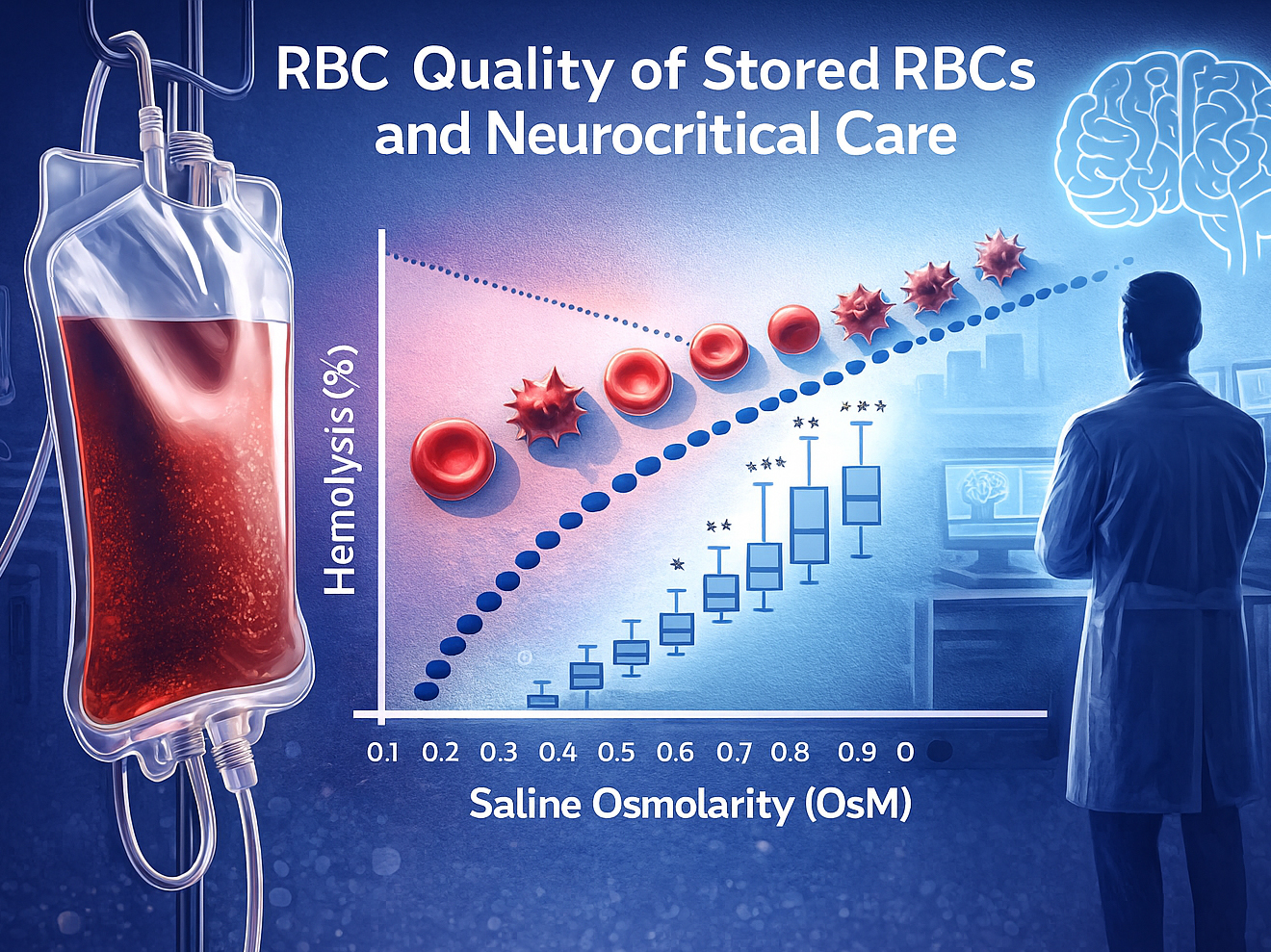 Why It Matters: Patients with traumatic brain injury (TBI) and other neurocritical conditions rely heavily on optimal oxygen delivery to the brain. If stored RBCs lose stability and deformability after 28 days, transfusions may become less effective precisely when patients need them most. This work highlights the need to consider not only how much blood is transfused, but also the age and quality of the blood unit. Future use of quality markers such as OF may help clinicians personalize transfusion strategies and improve neurological recovery.